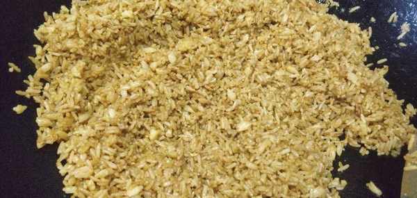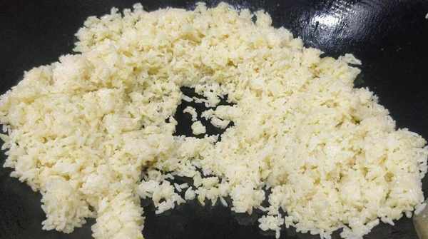 3.熱鍋冷油加入米飯(熱鍋冷油不粘鍋)