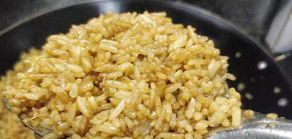 4.大火分三次加入醬油,分三次放能使飯和醬油更好的融合,也能降低鍋的溫度,不容易糊。