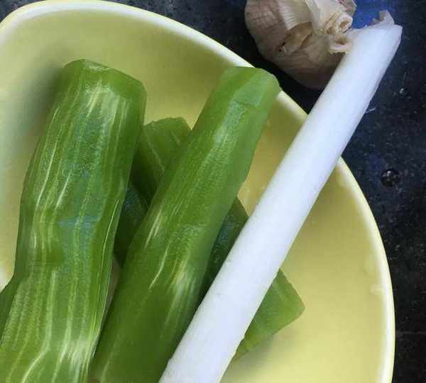 第2步、青筍去皮洗凈,蔥蒜備用。