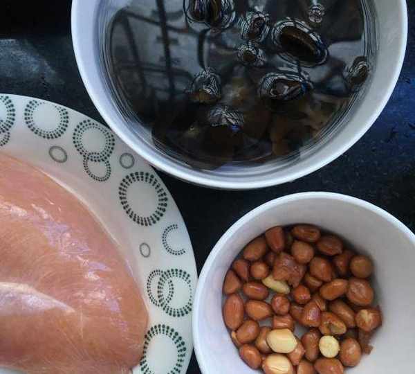 第1步、雞胸肉,油炸花生,木耳提前浸泡一會兒。