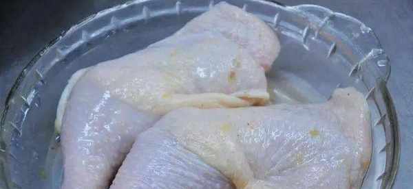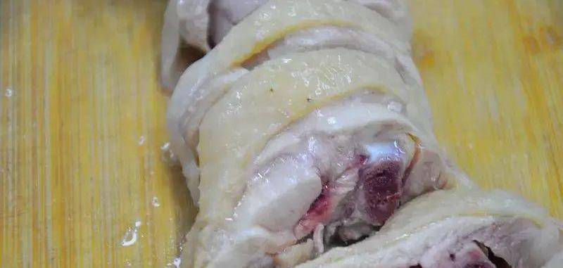 步驟八、將冰鎮好的雞腿撈出放在菜板上