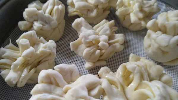 把所有這些面都給它做成這種小花的形狀,可以稍微給它整理整理整理好看 一點,然後把它們放到籠屜上,再醒瞭20分鐘左右,使它變成原來的兩倍大就可以瞭。
