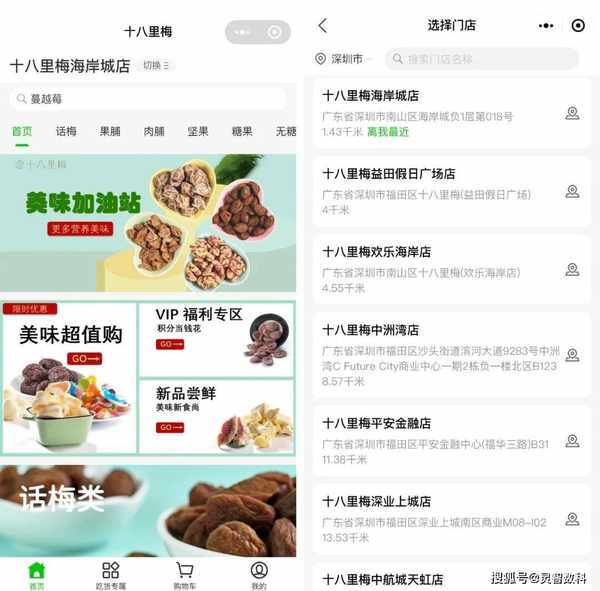 和傳統的純電商不同,靈智數科為十八裡梅搭建的輕量化線上小程序商城與每個線下實體門店深度打通。在小程序商城上,消費者可以根據位置切換到距離自己最近的一傢門店進行消費,並享受方便快捷的線上購物體驗。