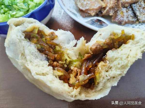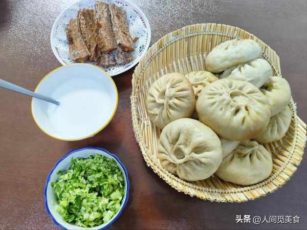 常媽媽選擇做包子也是有原因的,因為她的孫子真的太挑食,平時很少吃蔬菜,所以把蔬菜裹在包子裡,看不到也就不挑瞭,一個個包子吃得特別香。包好包子後,剩下的圓白菜她也沒有浪費,淋點香油,舀一點鹽攪拌均勻,清清淡淡地就可以做個開胃小菜,清香爽口助消化。