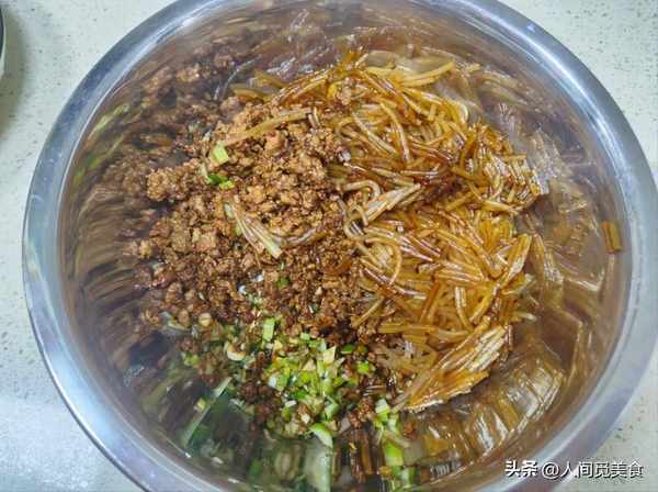 一大早常媽媽就起來開始做包子,面粉是昨晚就醒好的,隻需要捏成面團包就是瞭。這個包子餡兒是豬肉沫、粉絲和圓白菜,豬肉沫隻加瞭一點醬油炒一下,所以顏色比較深沉味道也適中。粉條剪成小段方便入口,還有切成絲的圓白菜甜絲絲的,這樣搭配起來不僅營養均衡,而且味道也不錯,有肉香味有蔬菜的清爽味兒,還有粉條的爽滑。