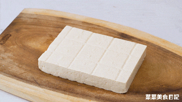 1.買回來的老豆腐洗淨,用廚房紙吸幹水份,防止油煎時濺油,再切成個頭為一口大小、厚度為0.5-1cm左右的片兒·厚度0.5cm的豆腐片做出的豆干是比較有嚼勁的,適合作為零食;如果喜歡軟糯多汁的口感,可切成1cm的厚片。