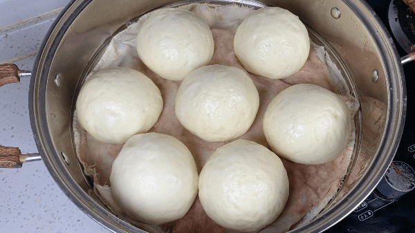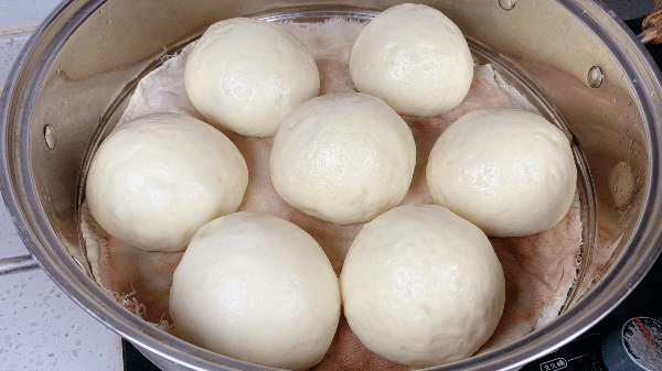 4、面團發酵好以後,取出來揉搓排氣,看似簡單得揉饅頭,很多人卻揉得不光滑。揉搓饅頭的時候需要右手用力,左手不停的轉,最後把饅頭揉光滑,再次發酵10分鐘。最後把饅頭放在屜佈上,涼水上鍋蒸,水開後蒸20分鐘,不要著急打開鍋蓋,再燜2分鐘。