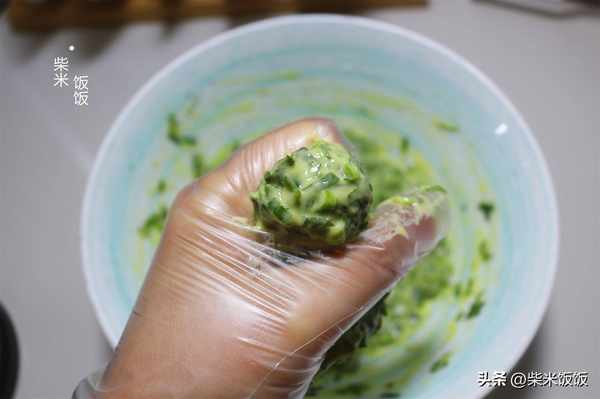 6,韭菜面糊擠出小丸子,個頭盡量小一點。