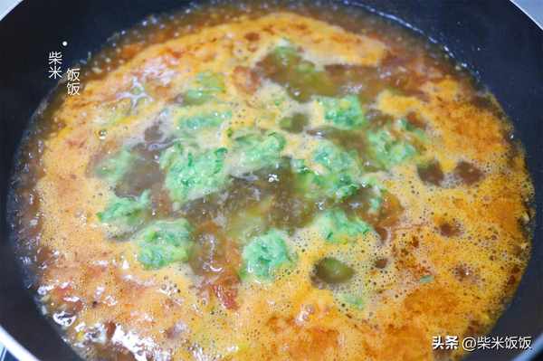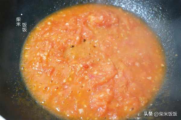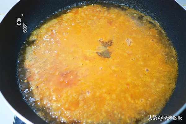 4,倒入西紅柿,大火炒出湯汁。
