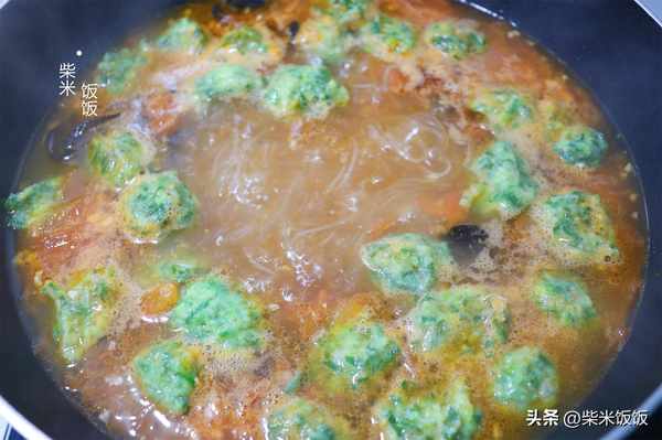 8,煮至丸子漂浮,放入紅薯粉條和木耳,再煮3分鐘左右。
