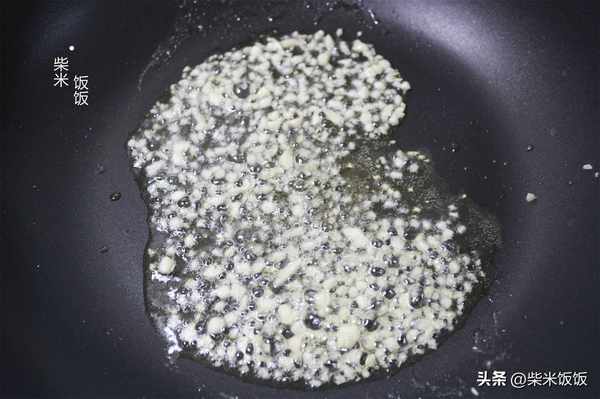 3,熱鍋涼油,放入蒜末炒香。