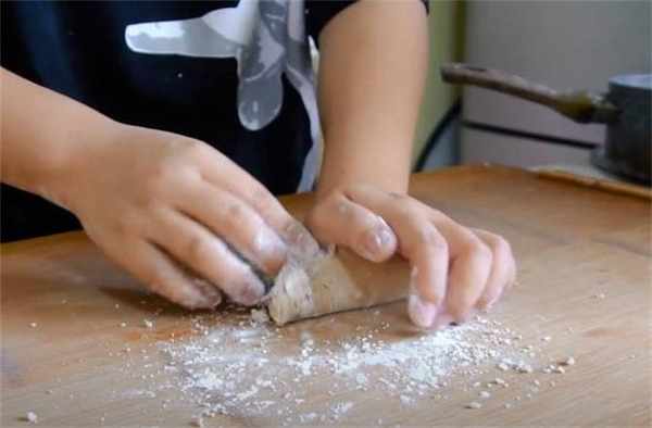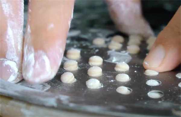 4.表面再稍微撒一些粉,用刮板把它們鏟下來,這就是一顆顆小珍珠瞭。
