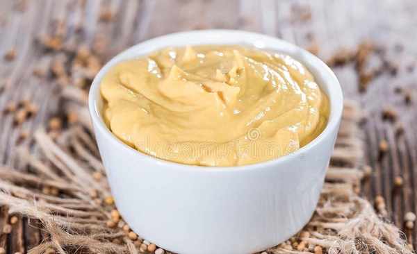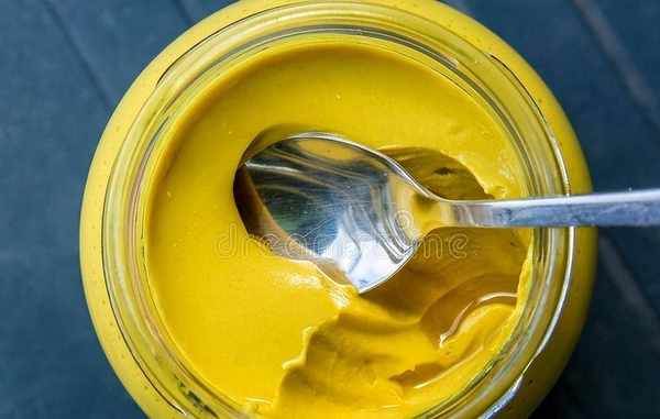 指的就是我們國傢使用芥菜種子研磨而成的黃芥末,研磨出來之後,其實是淡黃色的,在我們國傢,有些省份會將其少量的用在涼拌菜中,當然也有搭配漢堡和熱狗一同食用的。