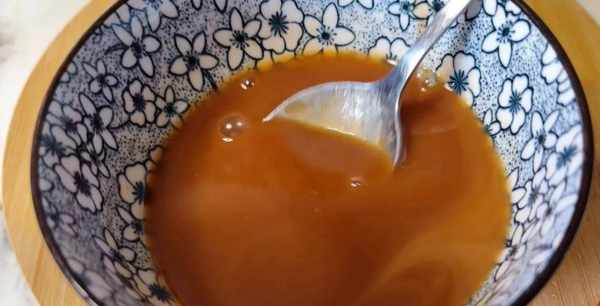 8、接下來準備糖醋汁,將白糖、生抽、香醋、蕃茄醬、水淀粉、雞精等放入碗中混合均勻。