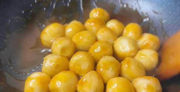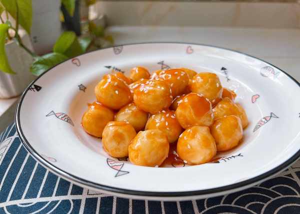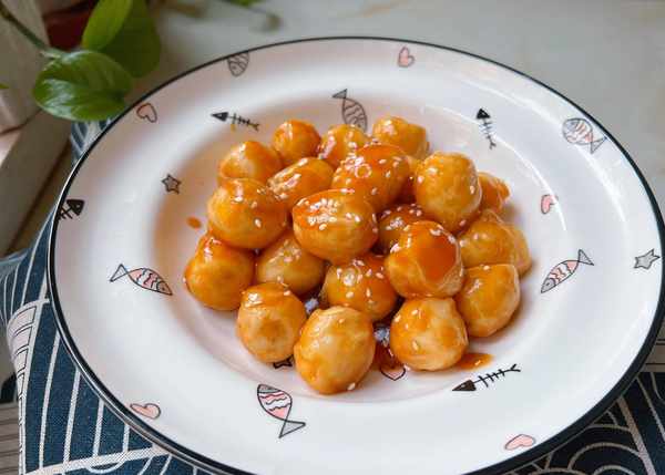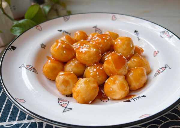 10、倒入炸好的鵪鶉蛋均勻地裹上糖醋汁。