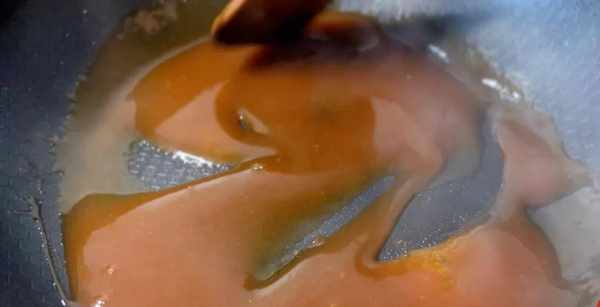 9、鍋加熱噴少許的油,倒入糖醋汁熬至濃稠。