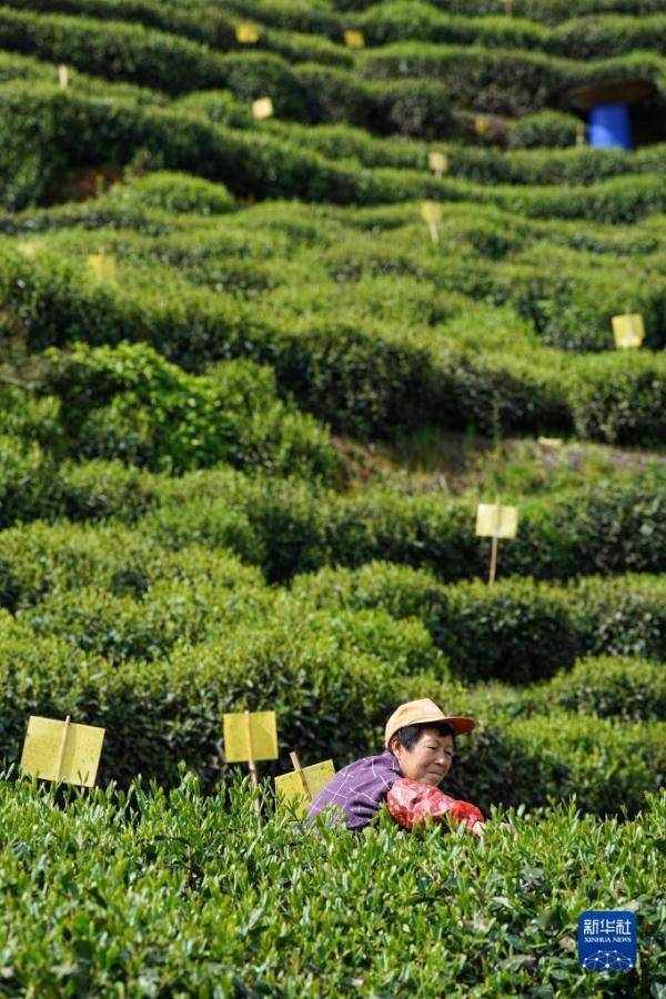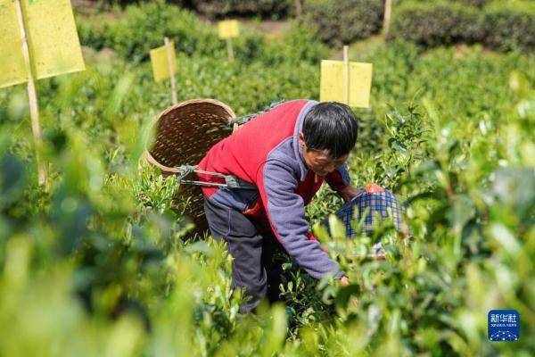 4月14日,在安徽省黃山市黃山區新明鄉猴坑村,茶農采摘太平猴魁鮮葉。