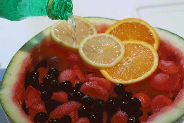 現在郊遊最流行的飲品就是西瓜飲料瞭,挖去一半西瓜瓤,放入各種水果,最後澆上一瓶雪碧,西瓜飲料就做好瞭。大傢拿起水杯一人一杯,碰杯的響聲加上大傢歡樂的笑聲,此次郊遊算是圓滿瞭。