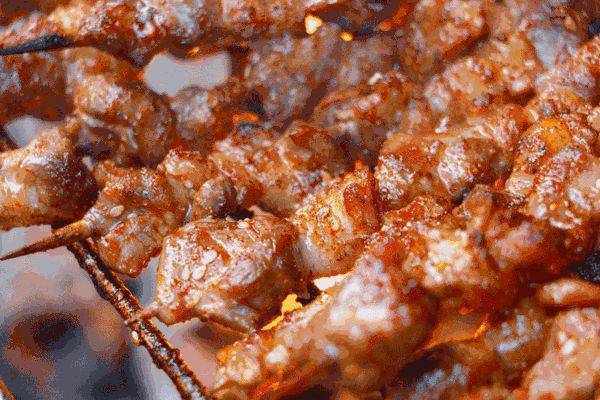 肉質鮮嫩、肥瘦相間的肉串,烤得噴香冒油!趁熱吃,滿口都是濃鬱的肉香,細膩滑嫩,味美不膻,極有嚼勁,食肉獸真是極難抗拒啊!蔬菜也被烤出本身的香味,讓人垂涎欲滴!