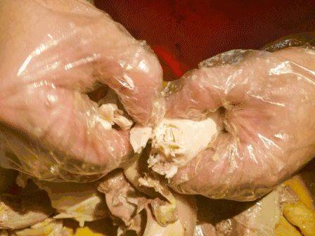 手抓肉也有專門從飯店買來的,打開包裝盒蓋子,肉還是熱騰騰的。
