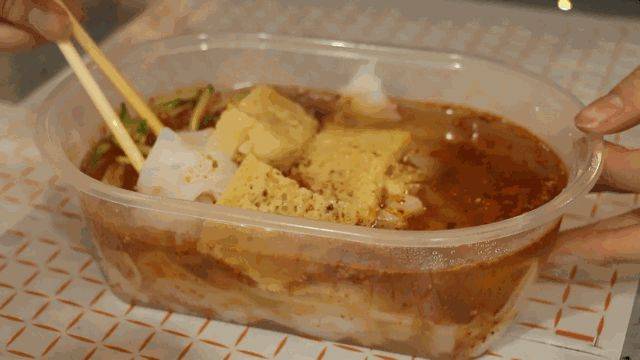 打開餐盒,涼皮薄如紙,明如玉,彈性十足。它融入川菜中的“麻”、湘菜中的“辣”,因而十分爽口,不一會兒就會被大傢消滅。