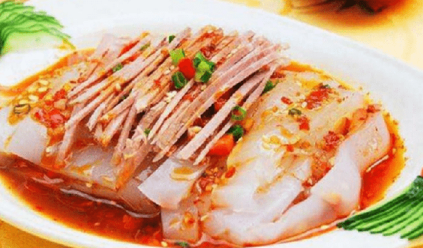 孔莊粉皮兒至今有300多年的歷史,制作工藝精細,用料純正,吃起來口感細膩。放點黃瓜以及香醋,還有辣椒油攪拌均勻,酸爽開胃。