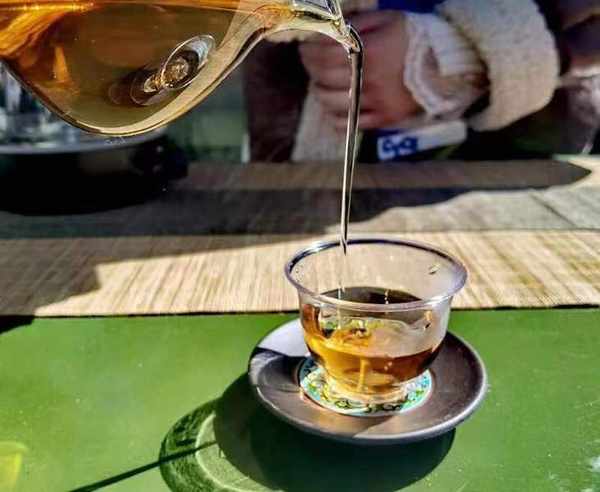 “現在為您沖泡的是古樹普洱茶中的極品,‘曼松貢松’,這是一款2022年用頭春曼松古樹制作的普洱生茶......”在為客人泡茶的同時,馬老師還給大傢細致地普及著茶文化。