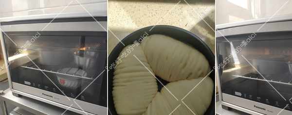 14.烤箱中放一碗熱水,把面團放入烤箱中,30——40度左右,40分鐘,進行第二次發酵。