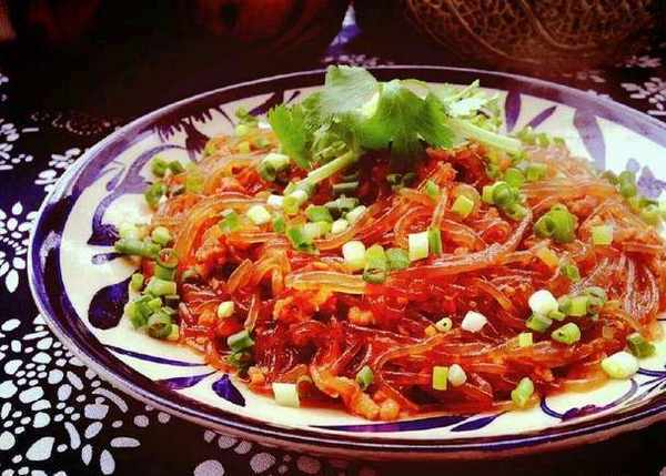 肉末貼在粉絲上,螞蟻為面筋米,樹為粉絲,菜以形取名,形象逼真。口味清淡,爽滑美味,色澤紅亮。粉絲油亮,柔軟滑嫩。