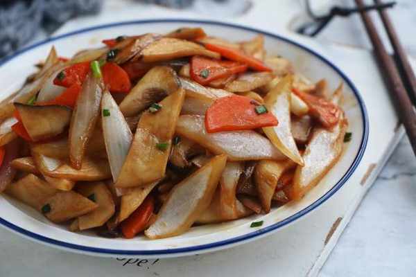 3、炒制雞腿菇需要時間掌握得恰當,不宜炒久,否則會煮散影響口感。