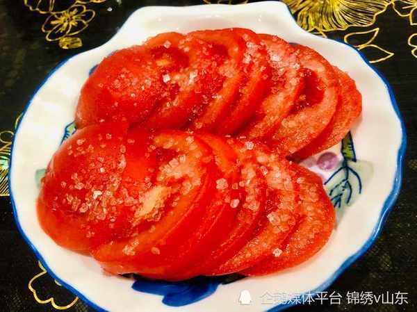 1.用食鹽搓洗幹凈番茄,然後切成小塊,放入大碗中。