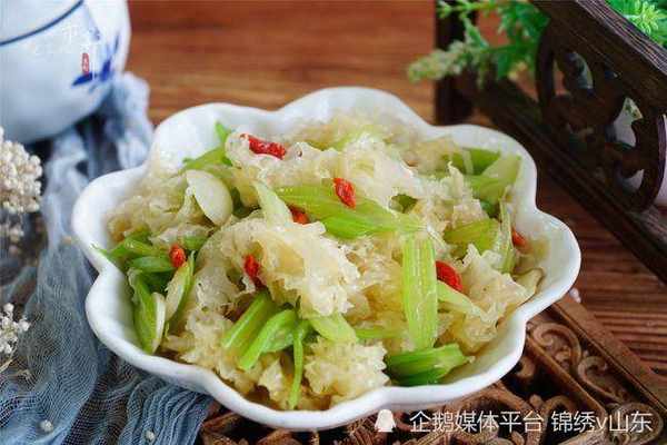 所需食材:銀耳、芹菜、枸杞、大蒜、生抽、淀粉、鹽和雞精適量。