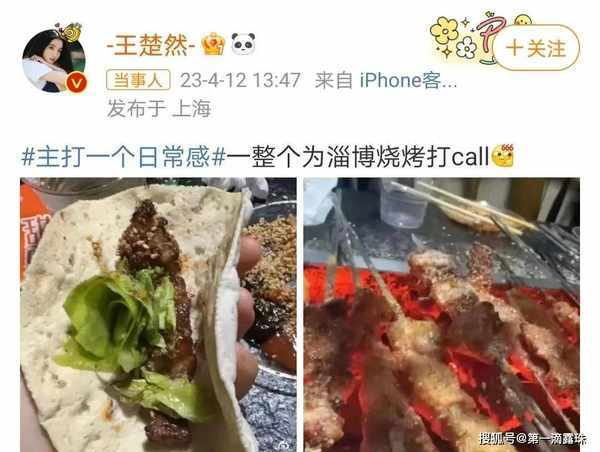 王楚然在個人主頁上,曬出手機裡吃傢鄉燒烤的存圖,配文稱“一整個為淄博燒烤打call”!並且,在外地拍戲打拼的她感嘆:“隻能靠存圖想念淄博燒烤瞭”。