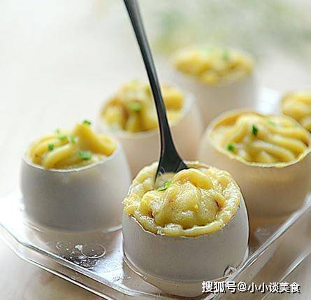 1.大土豆去皮切片;土豆片蒸兩個雞蛋;準備空蛋殼,洗凈用開水燙一下備用;將土豆片放入攪拌杯中;土豆片打成細泥,打勻後加入蛋黃,繼續攪拌;