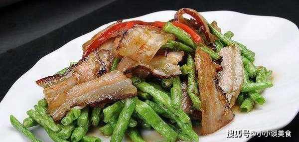 2.油鍋燒熱,爆香蒜蓉,然後加入臘肉炒至透明撈起待用,再加入豆子加少許水炒熟,最後加入臘肉翻炒入味,加少許鹽和雞精調味。