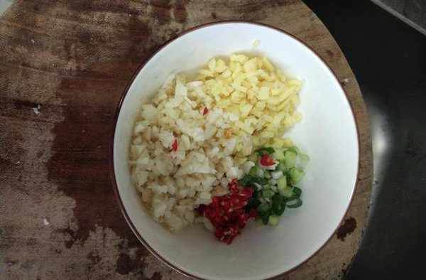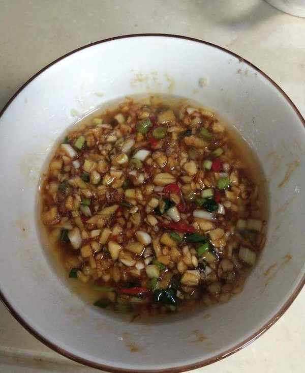 這時我們開始準備配料:蒜末和薑搗碎,加入蠔油,生抽,大蒜,胡椒粉,辣椒面(不能吃辣的可以不放)攪拌均勻備用。