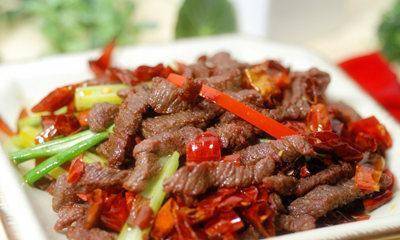 材料:牛肉碎150克,豆腐幹4塊,花生米,幹辣椒,醬油,香油,白芝麻,叁巴,香菜。