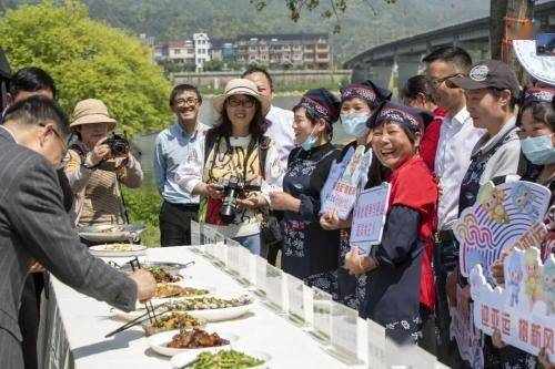 活動現場,廚娘們各顯神通,經過一番鍋鏟交響後,一道道色香味俱全的特色菜肴陸續呈現在展示臺上。鮮魚鍋仔、蔥油鯿魚、鮮肉燒春筍、肉末粉絲、紅燒豆腐、江洲水芹菜……香氣四溢,一時間富春江邊美景、美食交相呼應。