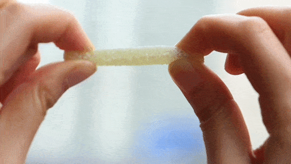 Nobel這款就是最經典標志的硬軟糖。怎麼硬,可以用gif感受一下: