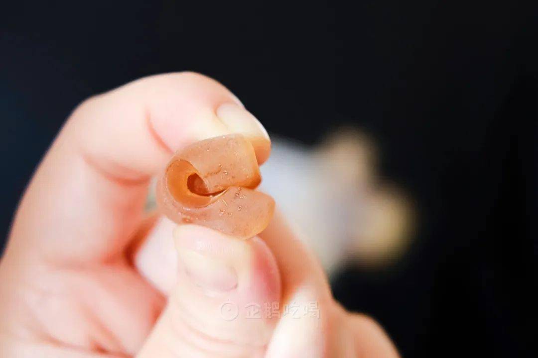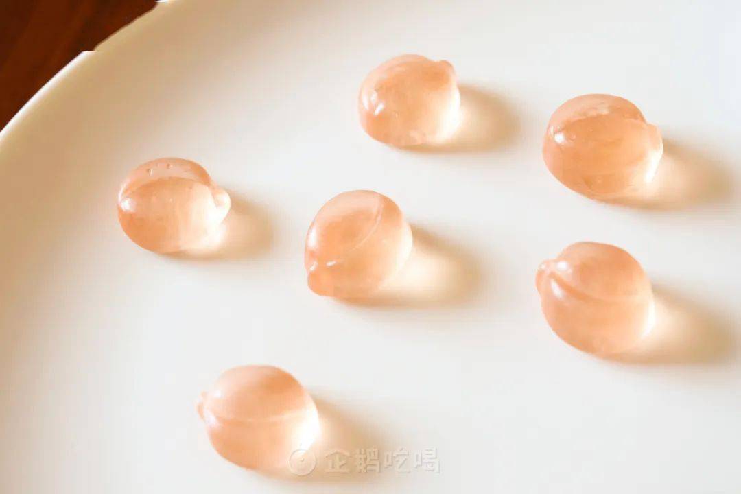 這枚軟糖是以膠原蛋白膜包裹住瞭中央水分含量極高的軟糖體,所以吃著有一種神似真實水果的多汁爆漿感,咬下還會伴隨著一聲輕快的“波咯”!