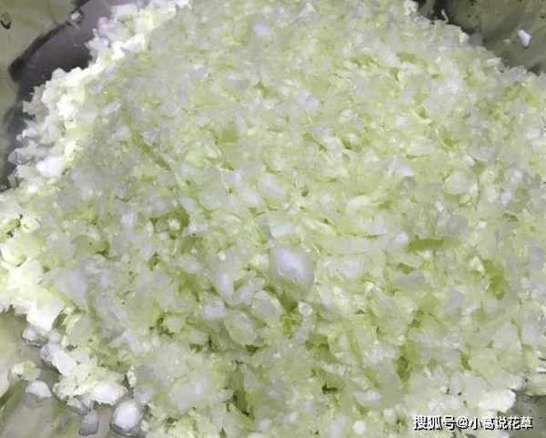 第二步:將白菜洗凈切碎,放入盆中,撒上少許鹽,攪拌均勻後醃制片刻至出水,將白菜中的水分擠出備用。