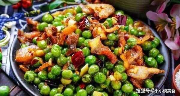 3、鍋裡放油,臘肉炒香,撈出,鍋底油不留,加入幹辣椒,稍微炒一下,加入四季豆炒香,同時加入醬油和蠔油時間,再加入臘肉炒香,加入鮮湯,放入蒜葉,浸泡片刻即可出鍋。