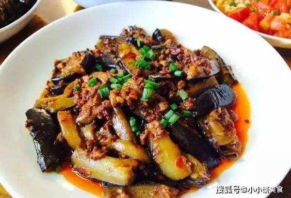 3、油熱至80%下茄子炸,表面呈金黃色,撈出控油;將肉末炒至幹,加入黃酒、蔥花、薑末、蒜末和稀釋的黃醬爆香,加入醬油和熱水,適量的肉末用清水浸泡片刻。水開後加入控油糖和茄條,大火煮三分鐘勾芡即可。