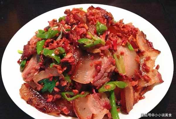 1.豬肉和香腸切片,青紅椒切段備用;大蒜炒香,水煮肉炒透明,加入青紅椒炒香。