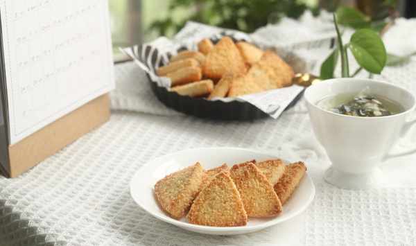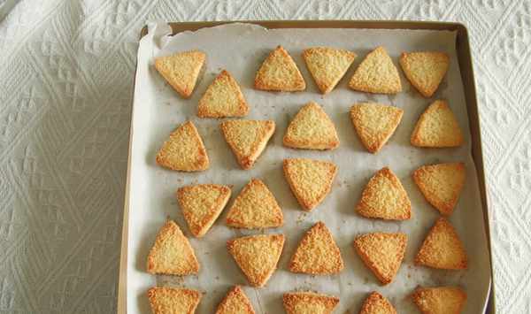 微甜不膩的椰蓉三角酥,混合瞭椰蓉的餅幹胚,蘸滿椰蓉再烘烤!從裡到外都透出濃濃椰香!下午茶不容錯過的小餅幹!一杯清茶,吃再多也不會膩!