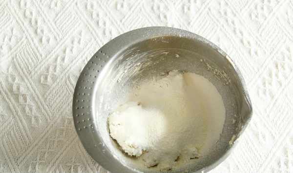 步驟8、篩入低粉和奶粉混合物。