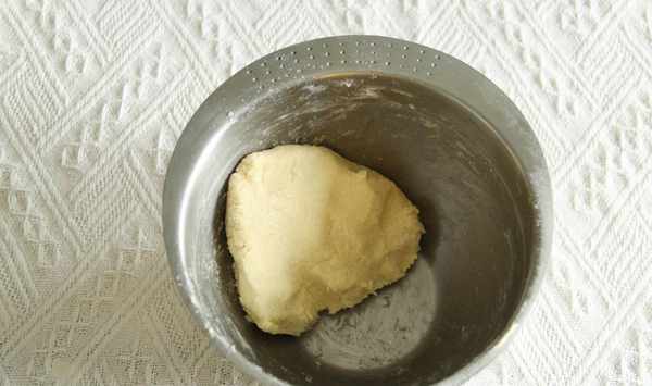 2、混合成團後如果粘手,可密封冷藏20分鐘左右再整形。