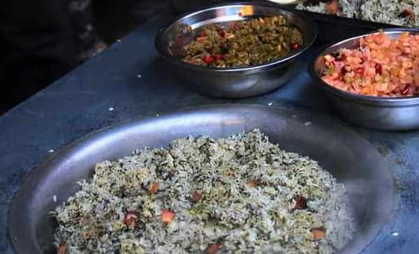 “社飯”是貴州省銅仁市玉屏侗族自治縣侗傢人每到春天都要制作的一道地方美食。當地村民將采摘的青蒿、野蔥等植物,與臘肉、糯米、幹豆腐、花生等混在一起,然後用鐵鍋燜制成“社飯”,燜熟後的“社飯”色香味美、松軟可口。