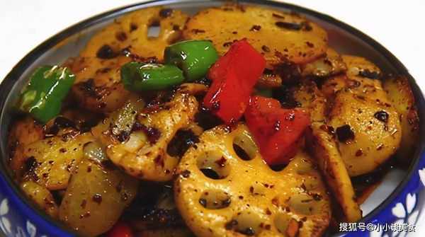 將泡過醋的藕片取出,曬幹,下鍋炒熟,加一勺醬油、適量香醋、少許糖和適量鹽,不斷攪拌。炒