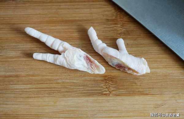 1取生鮮雞爪洗凈,一個個都剪去指甲,然後對半切開。